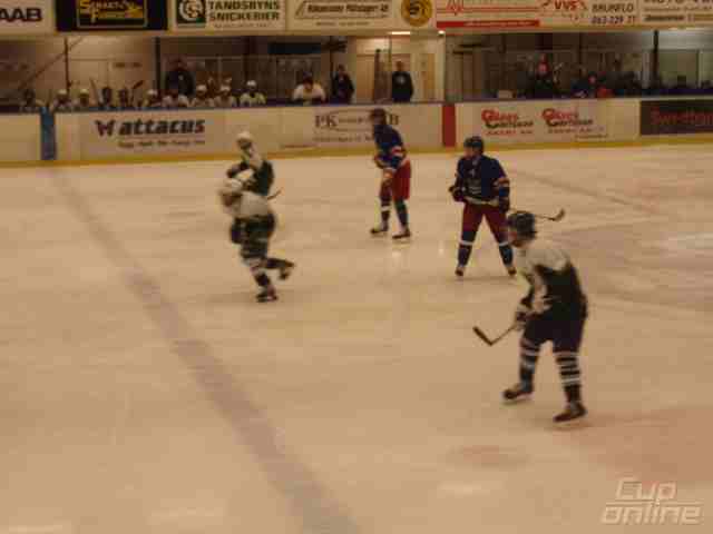 5 min uppvärmning på is före match med 10 puckar/lag