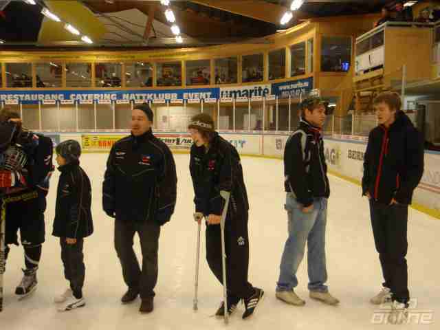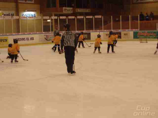 5 min uppvärmning på is före match med 10 puckar/lag